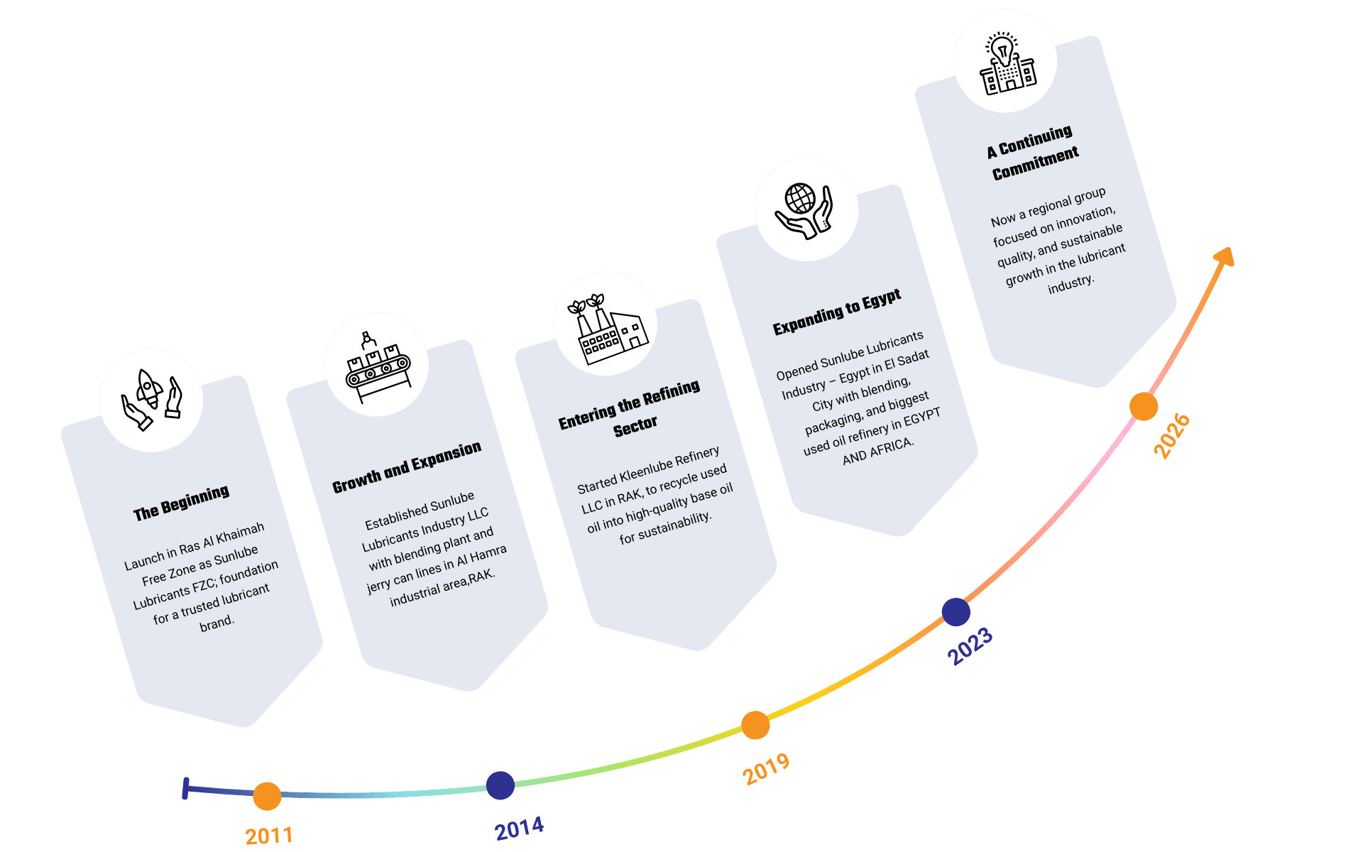 Our journey reflects a continuous evolution — from a small warehouse in Ras Al Khaimah to an integrated group spanning the UAE and Egypt, built on quality, innovation, and sustainability in the lubricant industry.